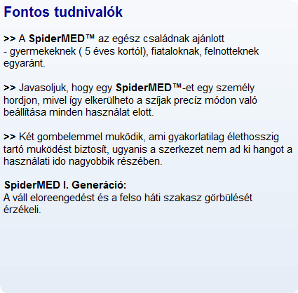 a SpiderMED tartásjavító használata elott kérjük konzultáljon orvosával.