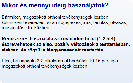 Figyelem! A piacon kapható fuzok és korrekciós gumiszalagok, hevederek nem aktivizálják az izommuködést, passzív módon, átmenetileg hatnak csupán. Az ilyen eszközök használata az izmok elgyengüléséhez, petyhüdtségéhez és az eredeti állapothoz való visszatéréshez vezet, sot az egészségi állapot további romlását is okozhatja.