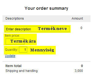 - A közlemény: A közlemény rovatba feltétlenül írja be a rendelési számot, amely a vásárlását azonosítja.